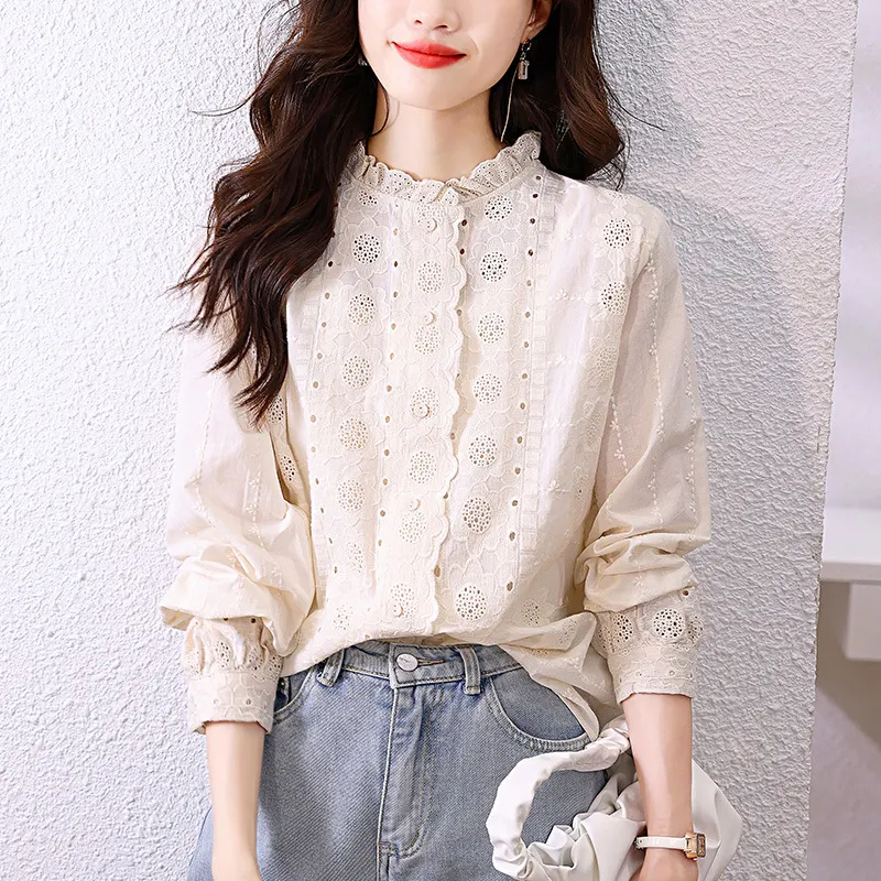 弊社の商品は全て量産品で、工場から直接発送となりますので、ボダンホールは全てお客様自分でお切りになります。ご容赦、了承ください。