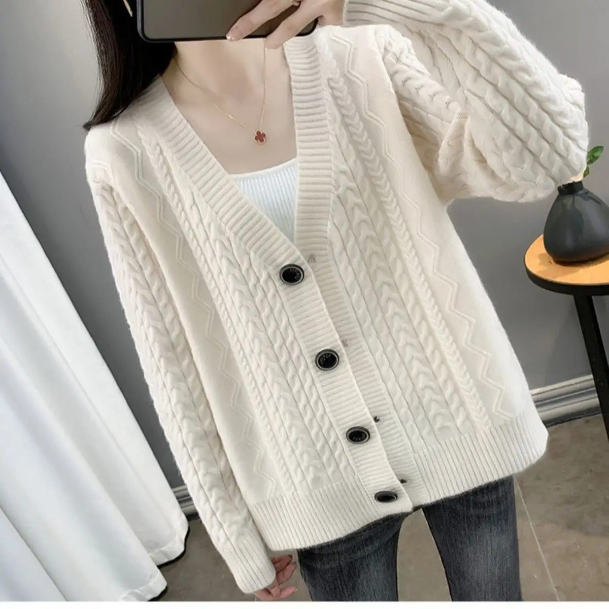 弊社の商品は全て量産品で、工場から直接発送となりますので、ボダンホールは全てお客様自分でお切りになります。ご容赦、了承ください。